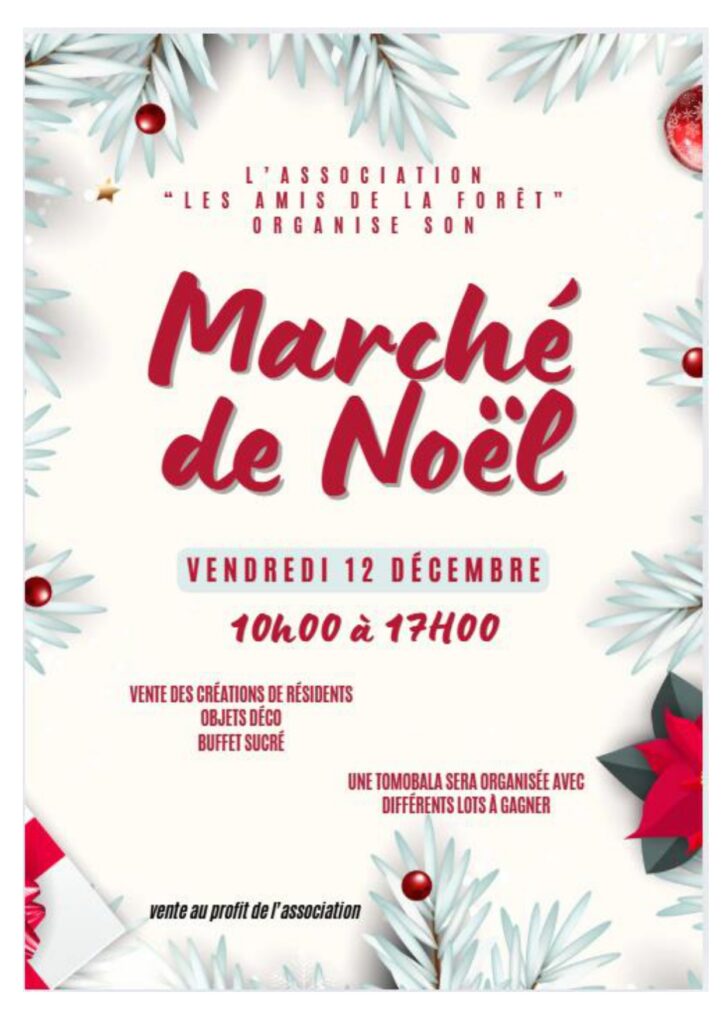 Le vendredi 12 décembre 2025, aura lieu le Marché de Noël. Ce Marché est organisé par l’association « Les Amis de la Forêt de Perreux » et vous propose à la vente divers objets déco et cadeaux réalisés par les résidents eux même. Une tombola aura lieu ce même jour avec de nombreux lots. Tous les bénéfices de cette journée seront intégralement pour l’Association. Alors RDV le vendredi 12 décembre à partir de 10h.