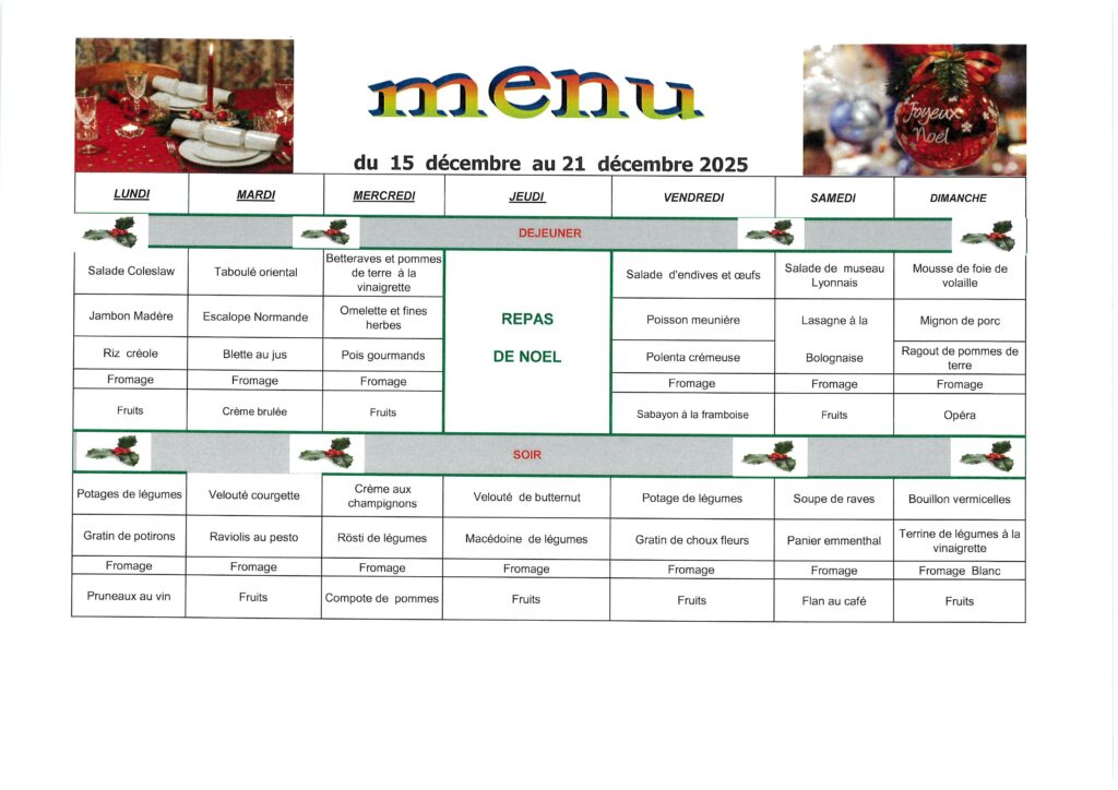 Menu du 15 au 21 décembre 2025