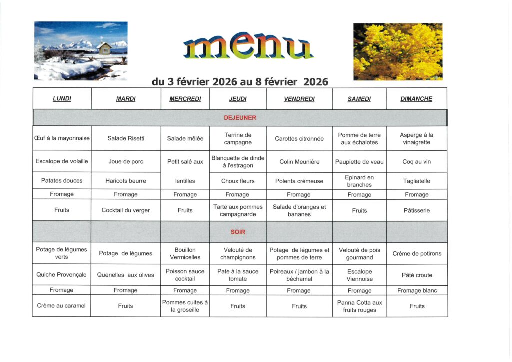 MENU DU 3 AU 8 FEVRIER 2026