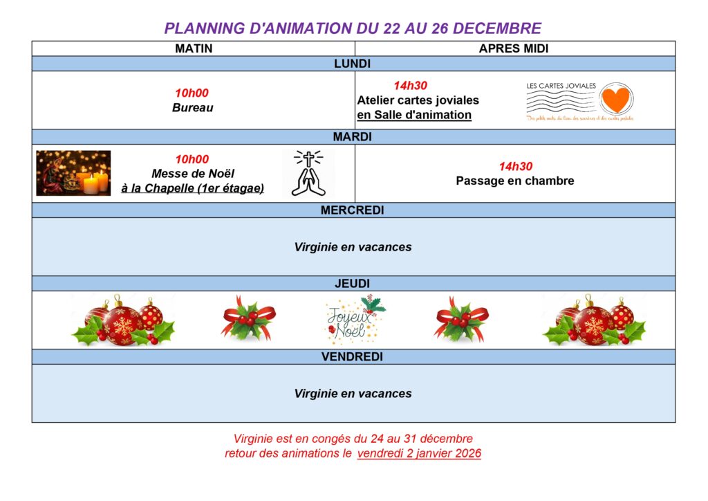 Chaque semaine, découvrez le planning des animations de l’EHPAD de la Forêt.