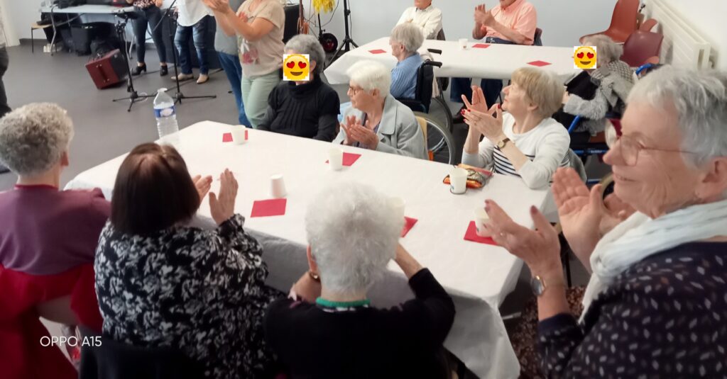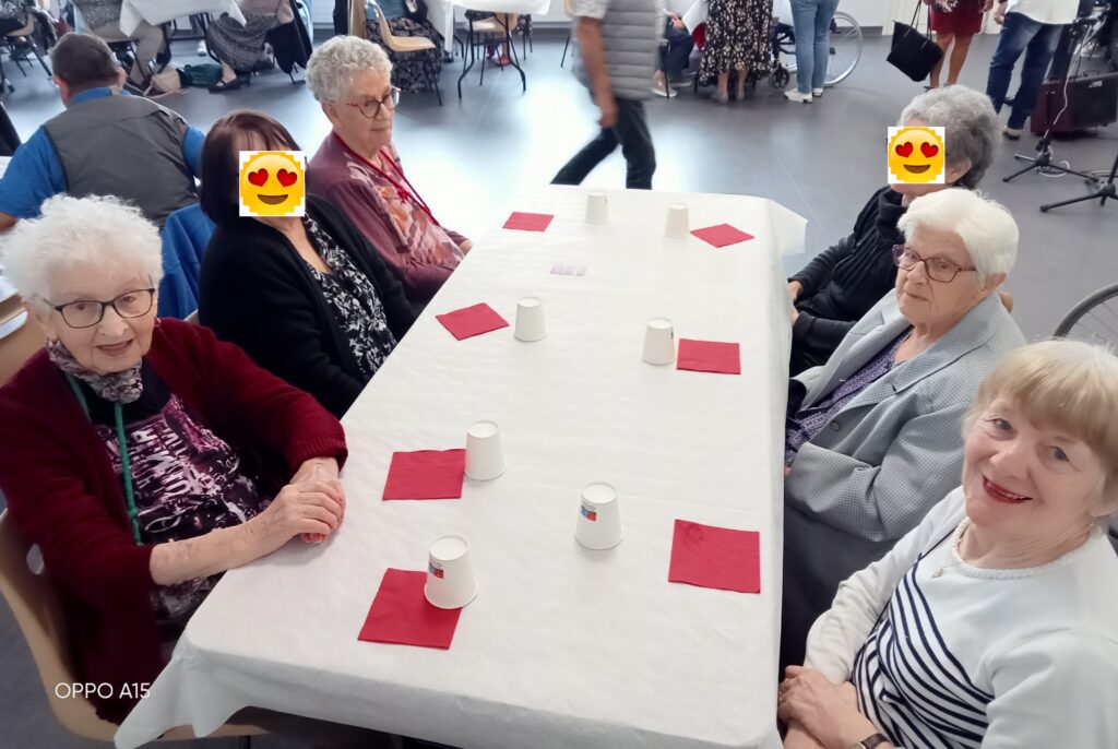 Dans le cadre de la semaine bleue, les animatrices de la direction commune élargie, ont décidé d’organiser un thé dansant pour les résidents des 4 structures. Un après-midi rythmé au son de Gigi Bel’Art accompagné de son épouse au chant. Les résidents ont pu profité de ce moment festif grâce aux associations de chaque résidence et à l’aide des bénévoles. Les résidents ont beaucoup apprécie ce moment de partage et se sont défoulés sur le dance floor. Un partenariat avec la boulangerie Vial, au Coteau, a été fait pour les tartes pommes et poires que l’association « les Amis de la Forêt de Perreux » a offert pour cette occasion. La prestation musicale a été offerte par l’association du Foyer résidence et de l’association du Parc, l’association de Montagny a pris en charge toute la partie « décoration » (nappes, verres, couverts, serviettes, etc…). La salle a été mise à disposition gracieusement par la mairie du Coteau. Le RDV est déjà pris pour l’année prochaine…